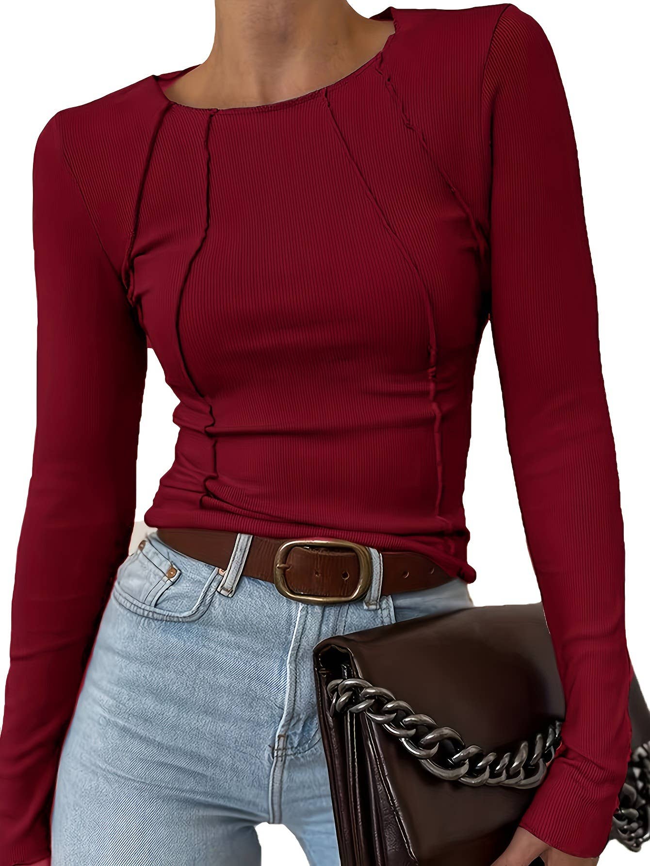 Y2K Fall Basic Long-Sleeve Ribbed Slim Fit T-Shirt Top_HWJ02518